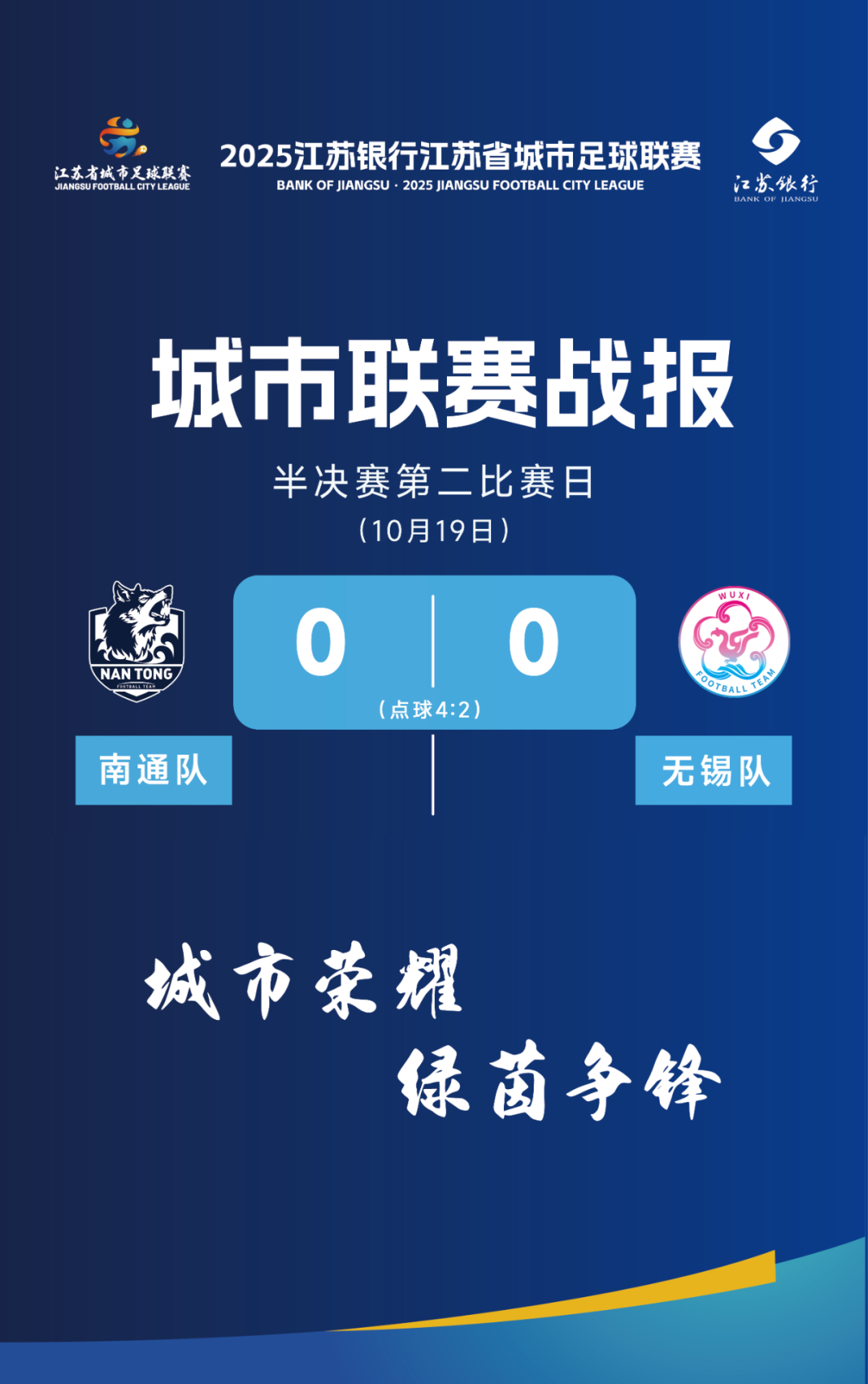 2025江苏银行江苏省城市足球联赛半决赛第二比赛日(10月19日)战报