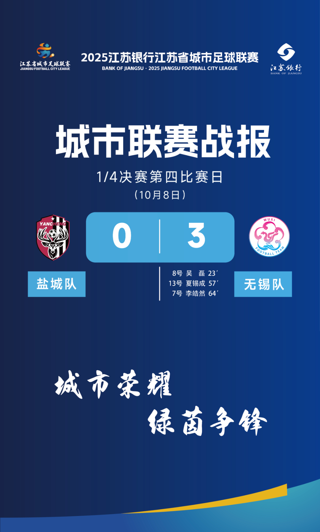 2025江苏银行江苏省城市足球联赛1/4决赛第四比赛日(10月8日)战报