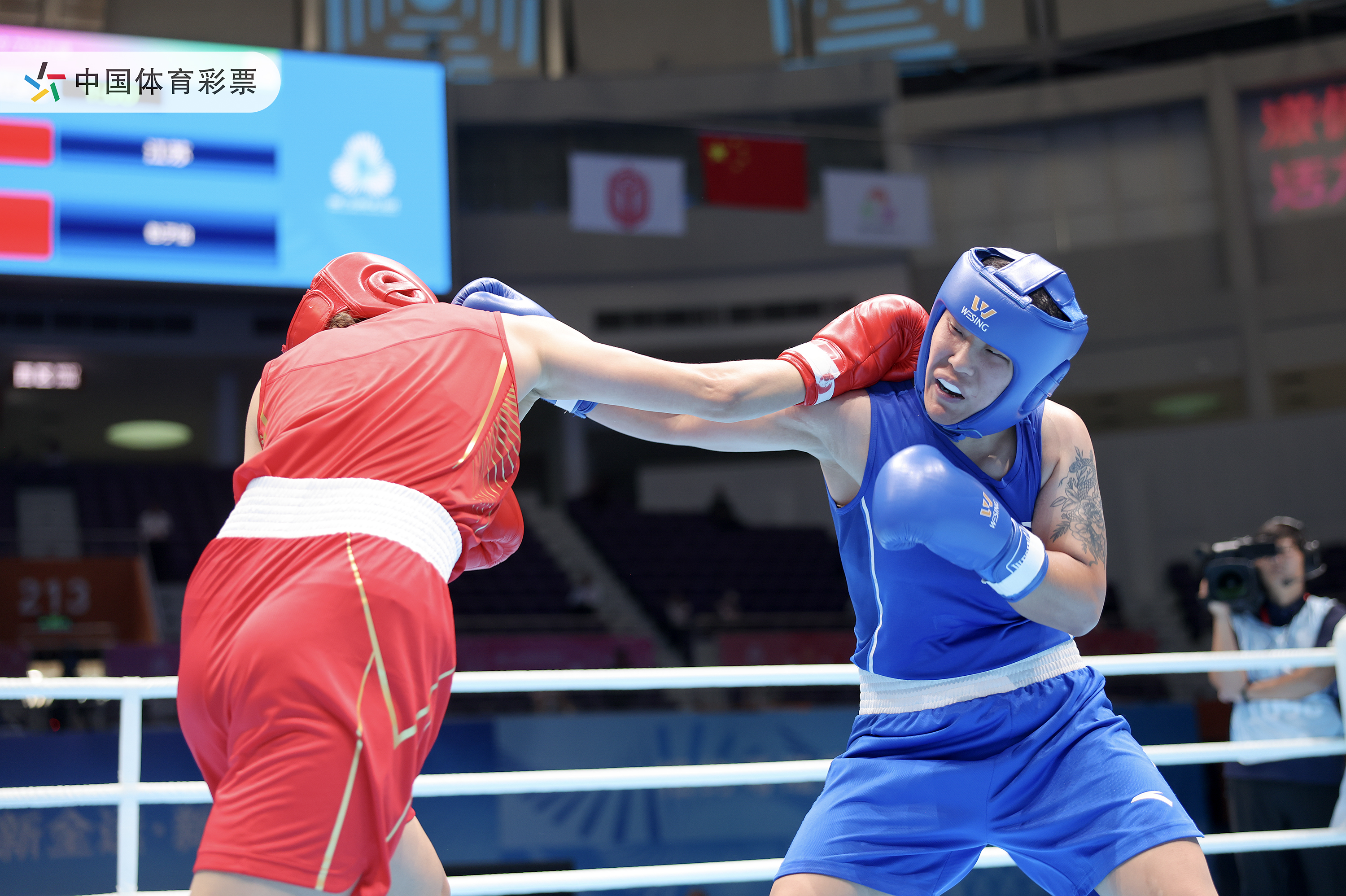 11月12日下午,第十五届全国运动会拳击女子75公斤级半决赛中,江苏队选手包子怡惜败黑龙江队选手汪丽娜。