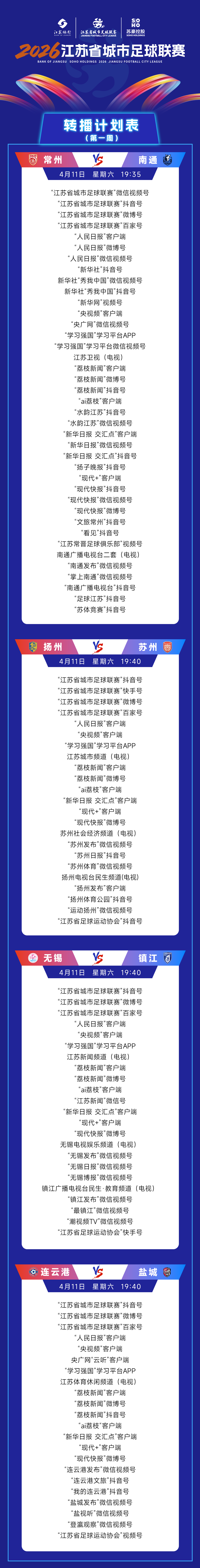 2026江苏省城市足球联赛第一周比赛转播计划表
