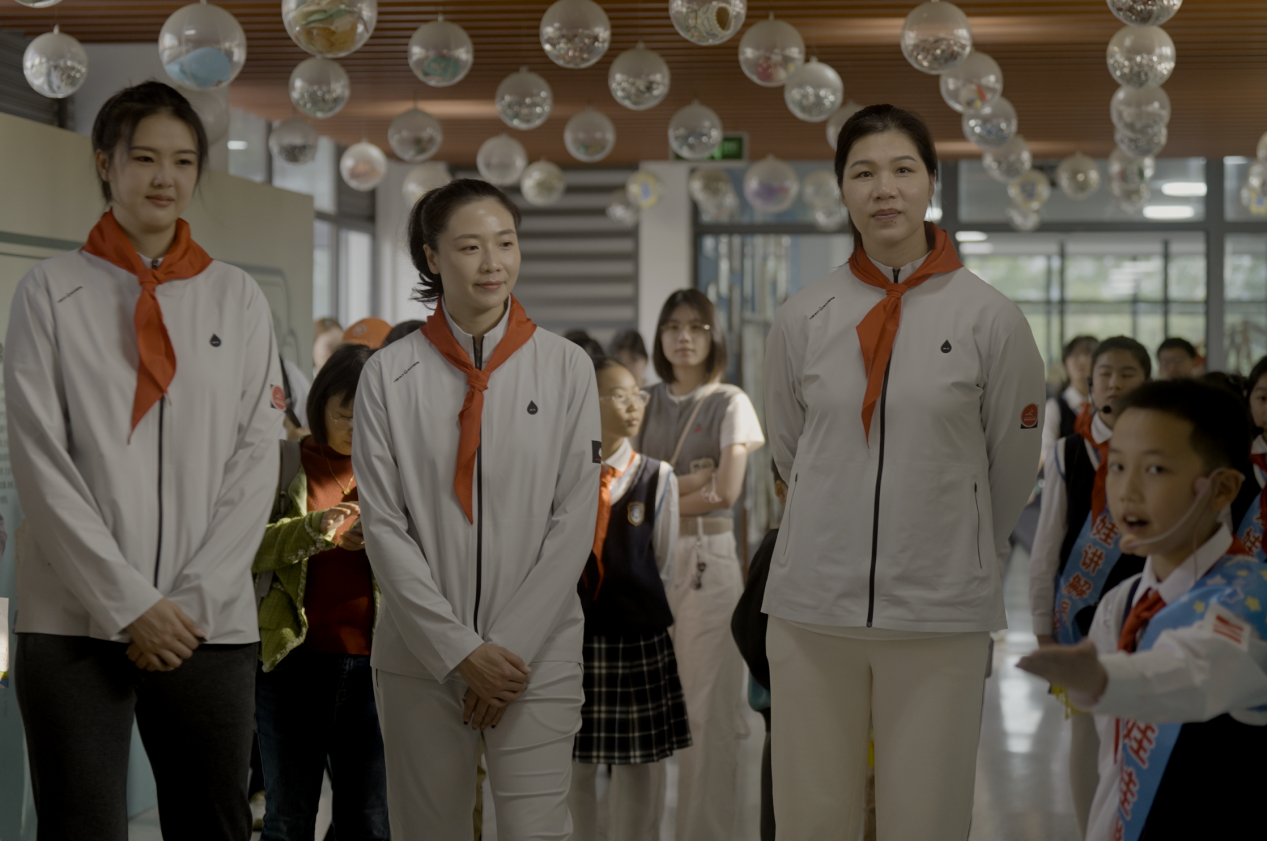 操场上,三位冠军与同学们同场竞技,在欢声笑语中传递排球乐趣与团队协作理念。魏秋月表示在互动的过程中看到孩子们眼里泛着光、身上有汗的样子,就是中国未来青少年体育文化的样子。