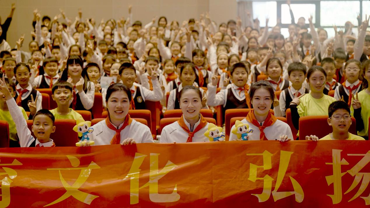 4月17日,2026体育文化全国行(江苏・南京站)走进南京外国语学校河西初级中学第一附属小学。中国体育文化宣传大使、2016里约奥运会女排冠军魏秋月与昔日队友徐云丽、张常宁将女排精神与中华传统体育文化带入校园,为师生带来一场充满力量与温度的体育文化盛宴。