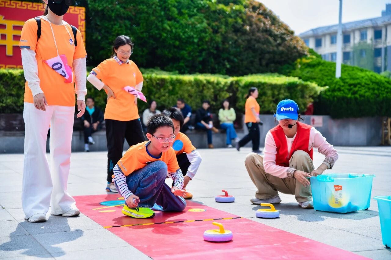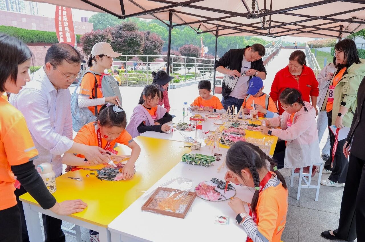 本次活动以“一大一小”亲子家庭为单位,设置“5公里健步走”“欢乐小游戏”“红色知识问答”“手工DIY”等多个亲子互动项目。在健步走沿线,活动设置多个打卡区,孩子们按序完成集章打卡任务;在游戏互动区,家庭成员共同协作,完成欢乐套圈圈、小冰壶挑战、趣味飞行棋、亲子接力赛等多个互动项目,增强亲子协作能力;在红色知识问答区,孩子们积极参与党史知识问答,在答题闯关的过程中加深对红色历史的了解;在渡江胜利纪念馆的广场上,同步开展红色手工DIY活动,让孩子们在寓教于乐中收获成长与快乐。