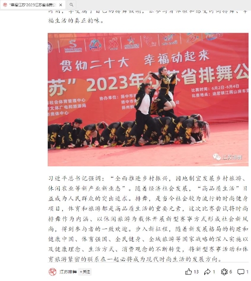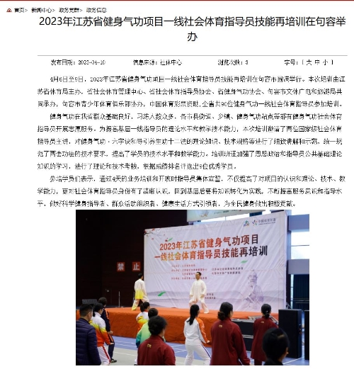 (2)媒体宣传。宣传手段包含纸质、广播电视、APP和网络媒体等。具体如下:在省体育局网站、省体育局微信公众号、中国江苏网、省社会体育指导员协会公众号等平台发布新闻稿、新闻图片。文字稿件均提及“中国体育彩票资助”相关内容,新闻图片中均体现“中国体育彩票”LOGO。通过宣传,取得了广泛、积极的宣传效果。