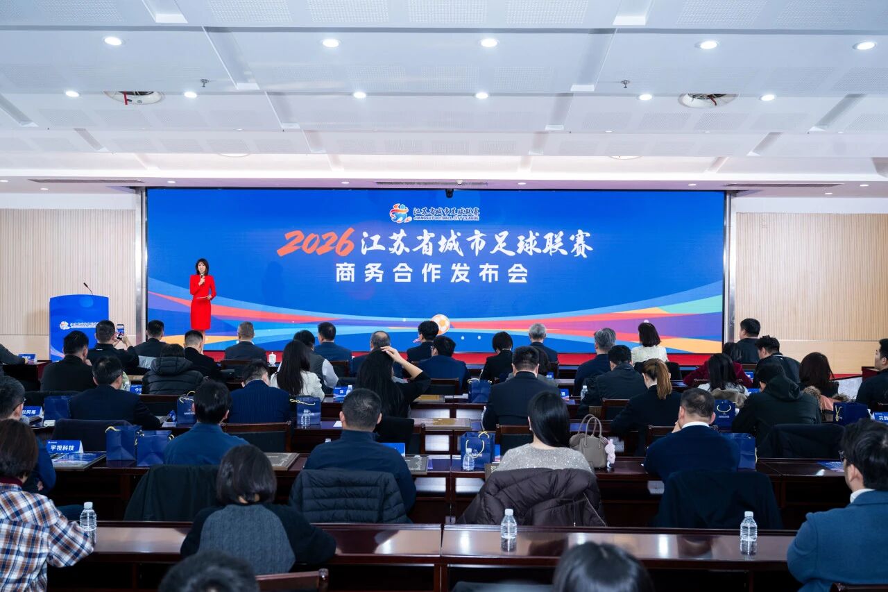 1月27日下午,2026江苏省城市足球联赛(以下简称“联赛”)商务合作发布会在南京举行。