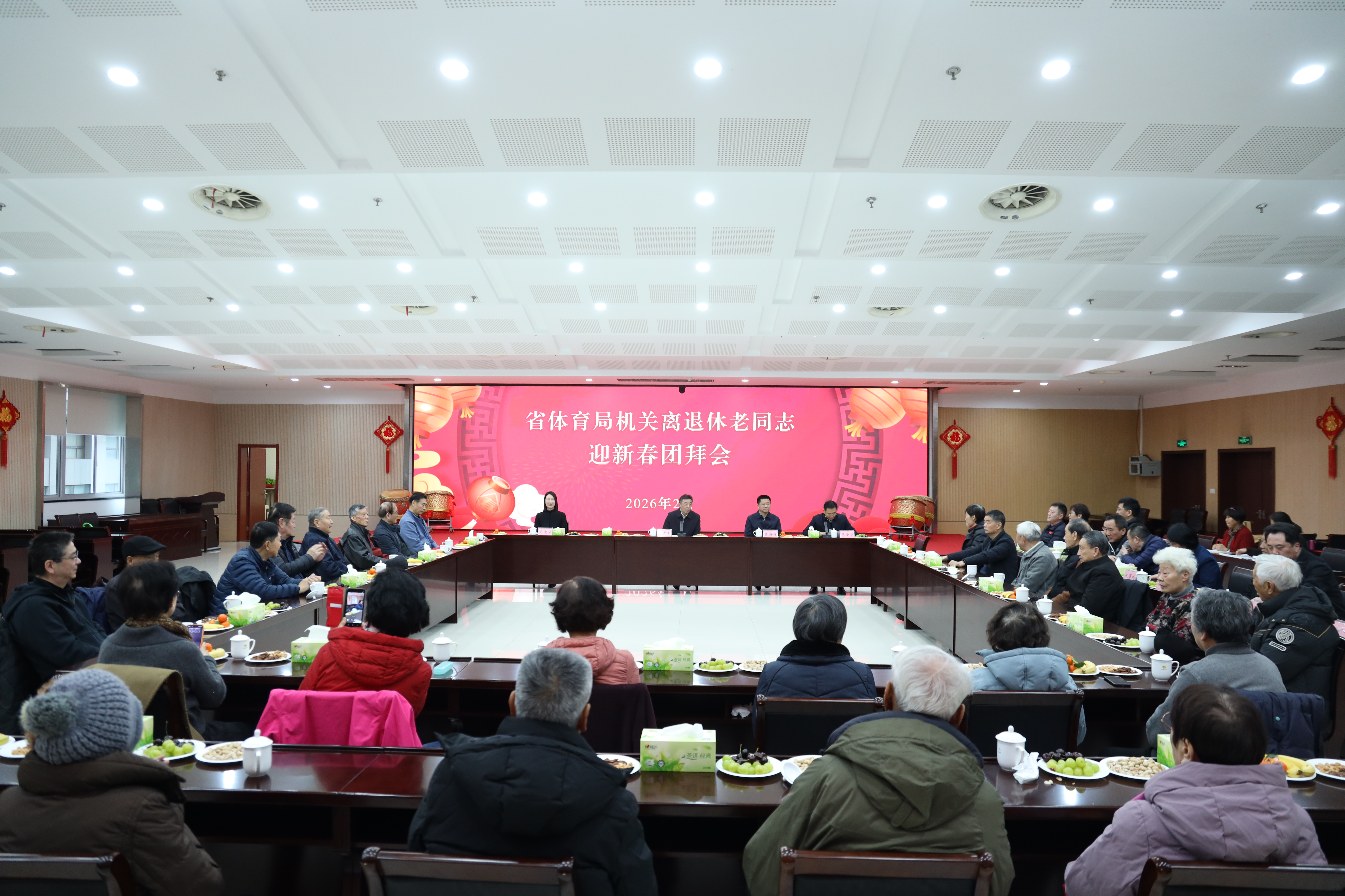 2月6日上午,省体育局离退休干部2026年迎新春团拜会在五环大厦举行,局系统离退休干部在农历马年春节即将来临之际欢聚一堂、共贺新春。省体育局局长、党组书记陈少军带领局领导班子出席,局机关处室、部分直属单位负责人参加了团拜会。
