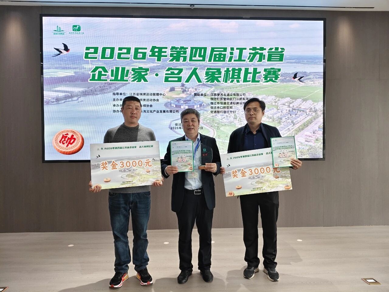 4月12日,2026年第四届江苏省企业家·名人象棋比赛在宿迁市朱海休闲运动小镇顺利收官。本次赛事以棋为媒、以赛聚力,汇聚全省商界精英与各界名人同台竞技,圆满完成各项赛程。